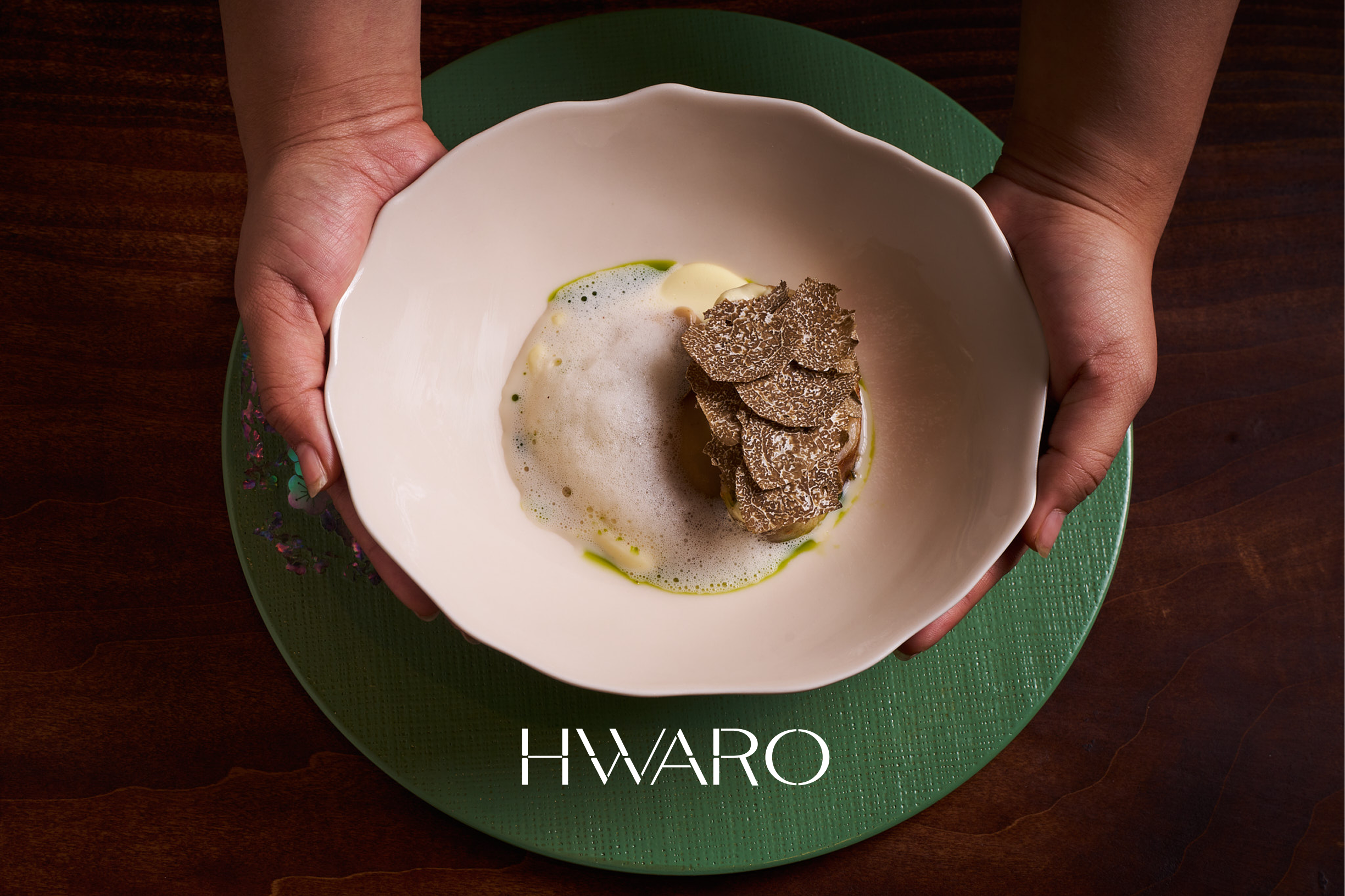 Hwaro’s space is shaped by warmth, color, and restraint. Vibrant plateware brings subtle energy to the table, while built-in furnishings add a sense of order and calm. Together, they create an intimate environment where intention is felt rather than explained.